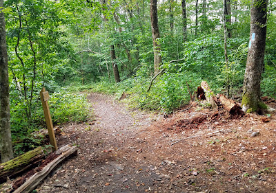 Once at the tower I headed down the Pounding Mill Trail to the Appalachian Trail (AT) I was surprised to find that the trail junction had been relocated. The Pounding Mill Trail use to junction with the AT heading left and right with the Northbound path going through a group of rhododendrons. Now it continues down about 20-feet to a dead end junction, Pounding Mill goes right while the AT goes both directions. It was a little confusing as which way was north-south, but I guessed left and I was right. I had to end up hiking the Blue Blaze Trail that leads past where the Greeneville Hiking Club sets up for AT Trail Magic. The reason, I had too much trash (rant soon) that I had picked up, so I to dump some at my car.