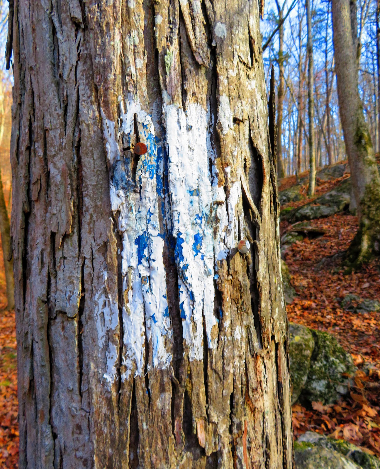 The hike I chose was called the Maple Arch Double Loop. In Johnny Molloy's book Five-Star Trails: Knoxville it is listed as a 5.5-mile hike. I knew I would be pressing it to complete it, but once I started I knew that I would only really get to do the first loop. The reason the trails at Panther Creek are really poorly blazed (like an Alabama grad designed them). The Ore Mine Trail (which begins at the end of the Spoone Picnic Area) that I started on had not one, or two, but three different blazes (red, white & blue).